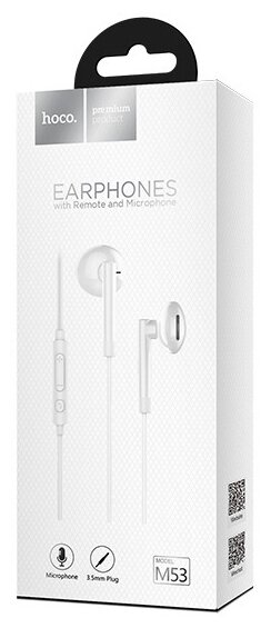 Наушники Hoco M53 Exquisite, Jack 3.5mm, 1.2 м, белый, контроллер с микрофоном