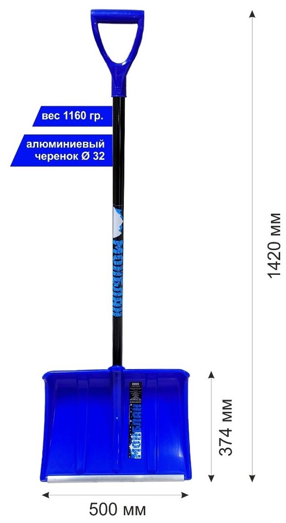 Лопата для снега Инструм-Агро Монблан, пластик, 1420 мм, синий