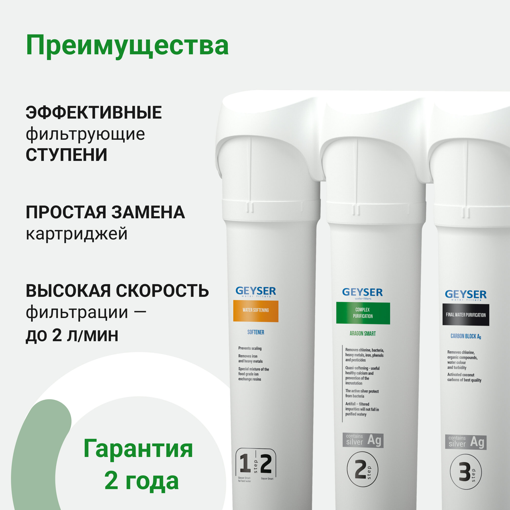 Фильтр для воды Гейзер Смарт Био 521 для жесткой воды с быстросъемными модулями 11056 информация: