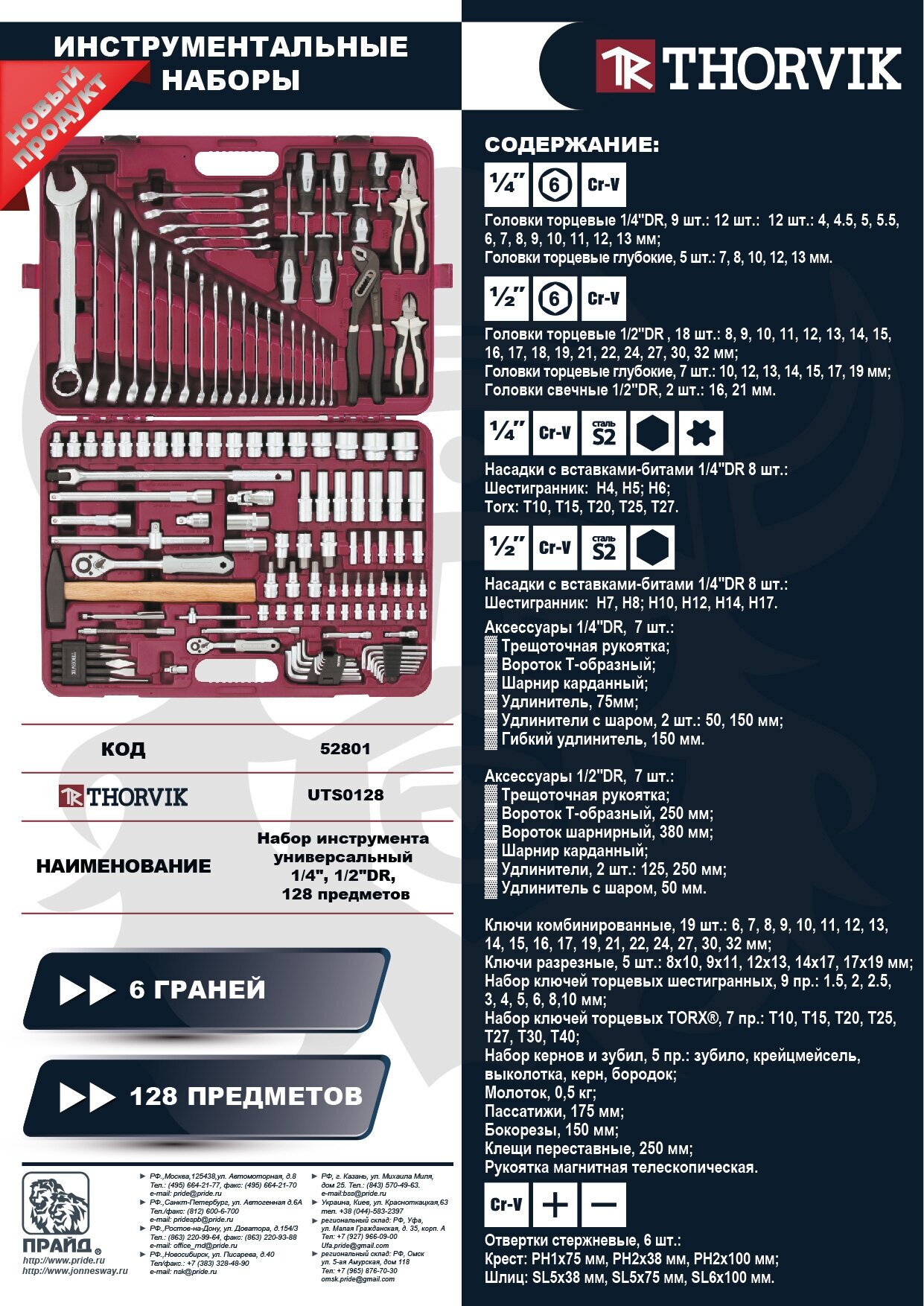 Набор Инструмента Универсальный 1/4", 1/2"Dr, 128 Предметов Uts0128 Thorvik THORVIK арт. UTS0128 информация:
