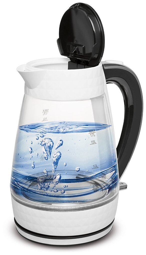 Электрочайник Polaris PWK 1704CGL белый/чёрный