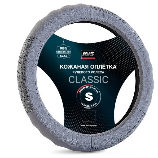 Оплетка на руль (размер S, серый) (натуральная кожа) AVS GL-200S-GR