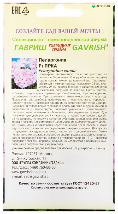 10 цен на Семена Пеларгония Ярка F1 зональная 4 семени в пакете