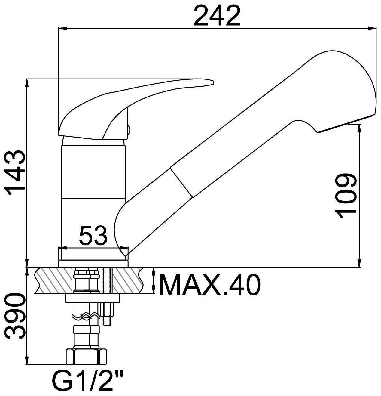 Смеситель для кухни A5440, однорычажный, с вытягивающейся лейкой, хром информация: