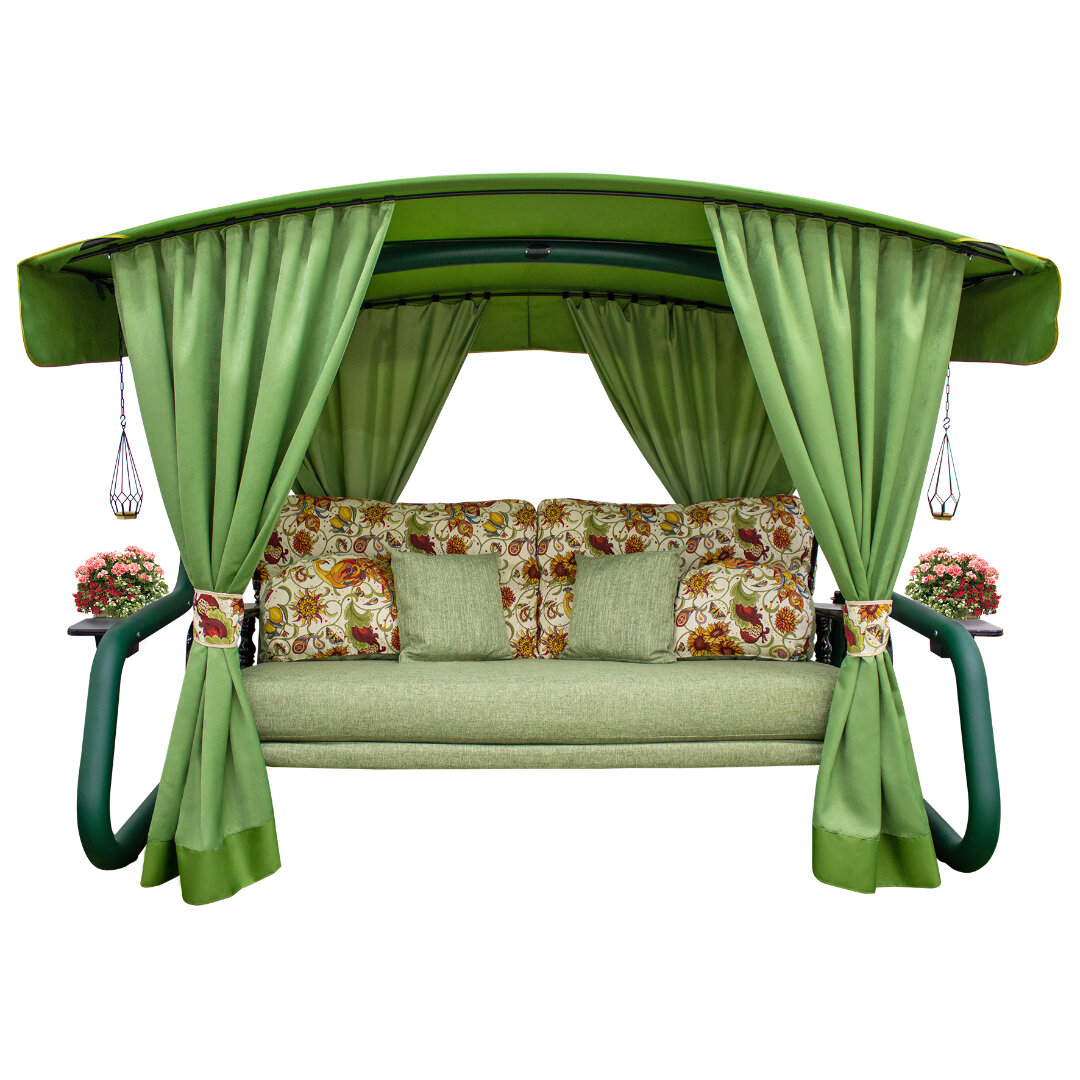 Садовые качели элегант премиум для дачи уличные 3-местные подвесные с тентом и москитной сеткой зеленый
