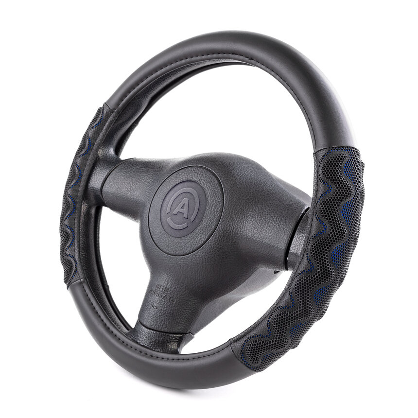 Оплетка руля (M) 37-39см черно-синяя экокожа объемные вставки AUTOPROFI AP-1948 BK/BL (M)