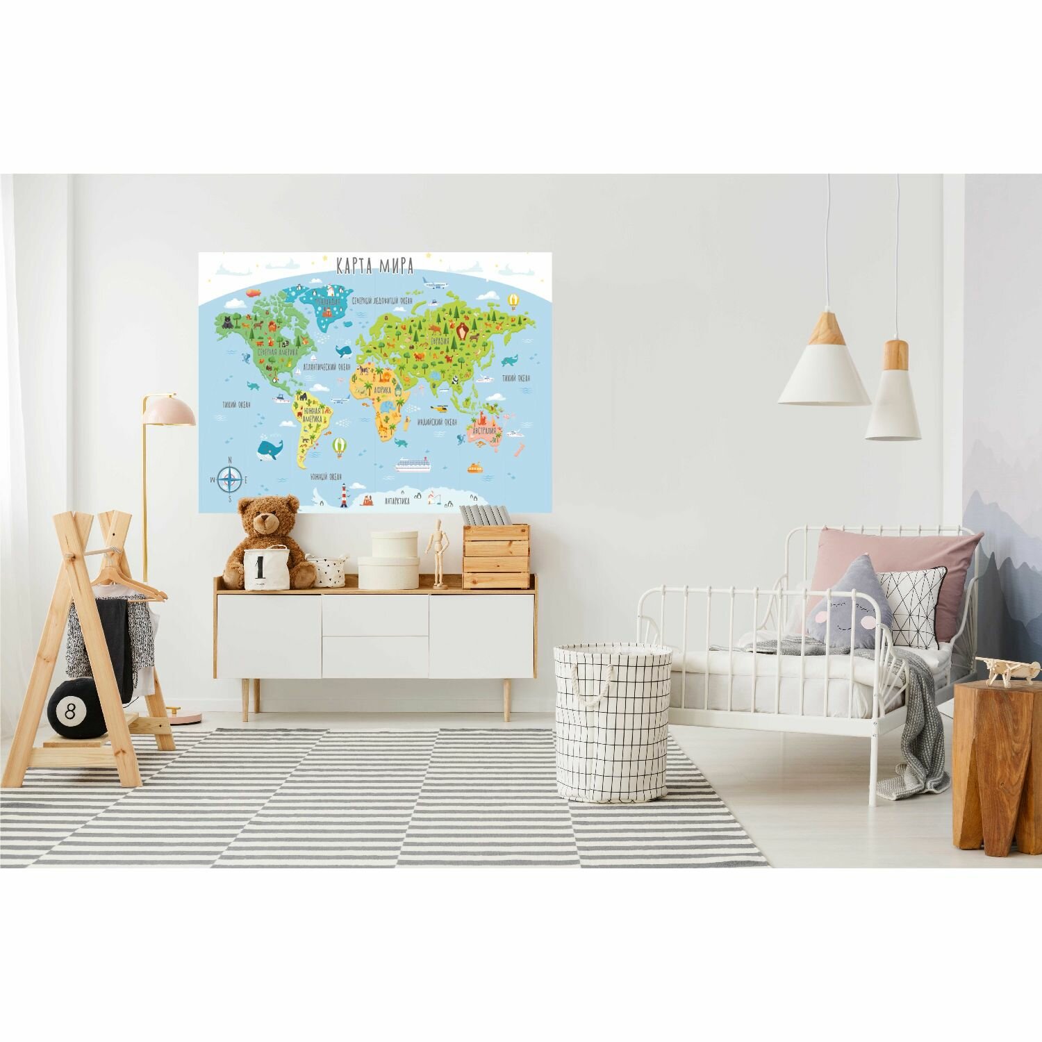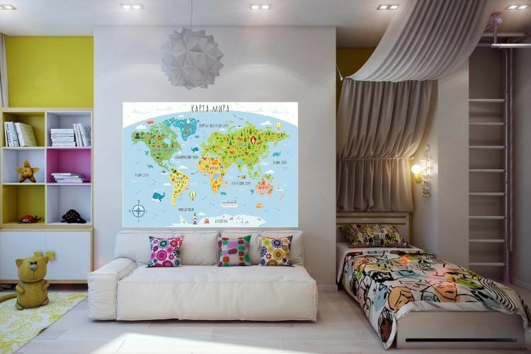 Фотообои в детскую "Симфония" бумажные для детей Карта мира 140*100 см. (2 листа)