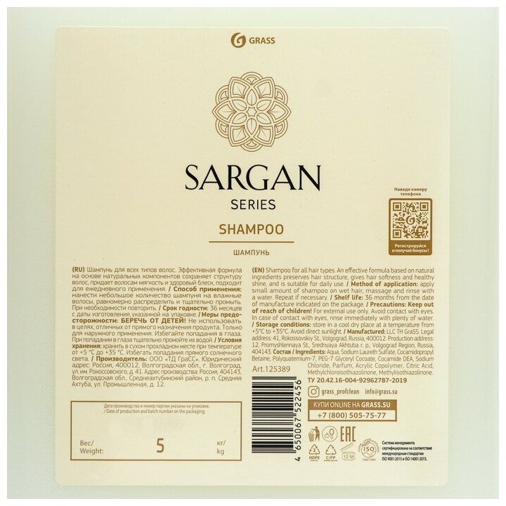 Шампунь для волос "Sargan" (канистра 5 л) информация: