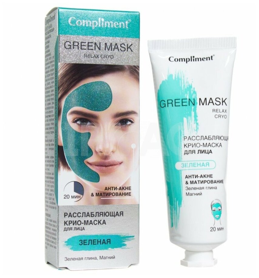 10 цен на Расслабляющая крио-маска для лица COMPLIMENT зеленая Анти-акне&Матирование, 80 мл