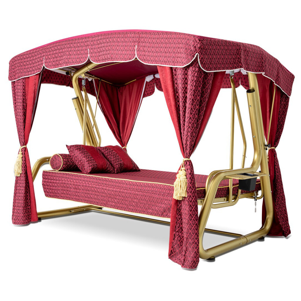 Садовые качели эдем люкс для дачи уличные 4-местные подвесные с тентом и москитной сеткой бордо