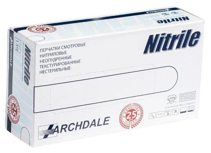 Перчатки смотровые Archdale NitriMAX, 50 пар, размер: M, цвет: белый, 10 уп.