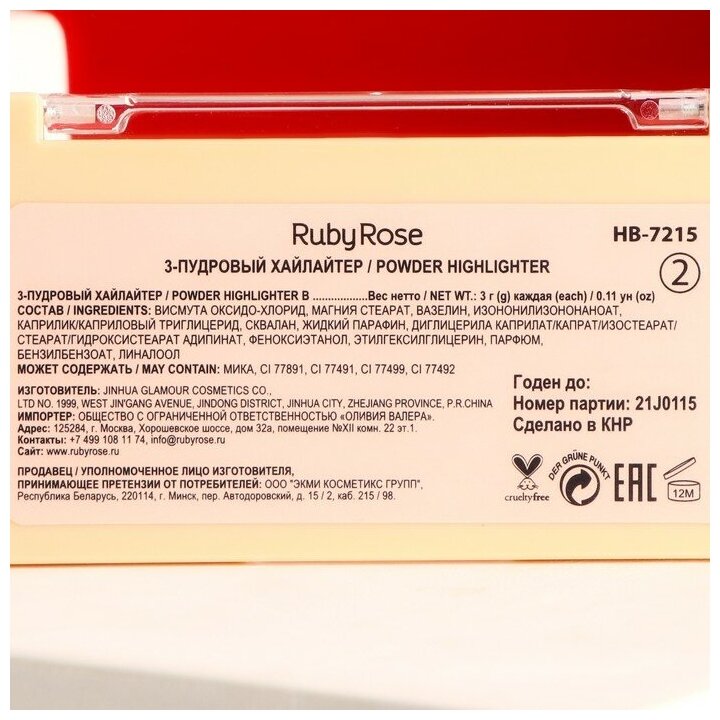Ruby rose / Палетка хайлайтеров Glowing Mini Kit HB-7215.3