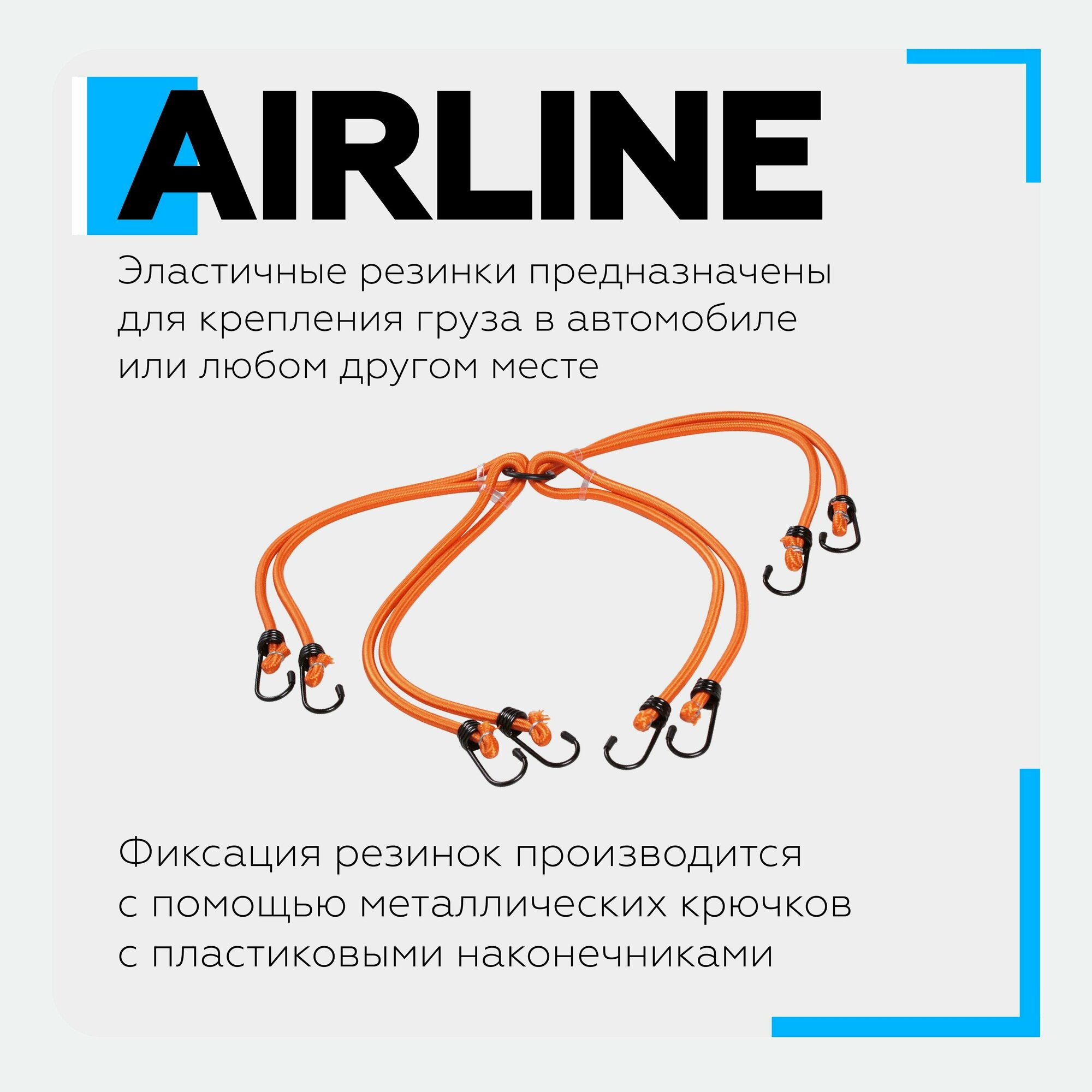 AIRLINE Резинка для крепления багажа Airline "Паук", 80 см, d8 мм, металлические крючки, набор 4 шт