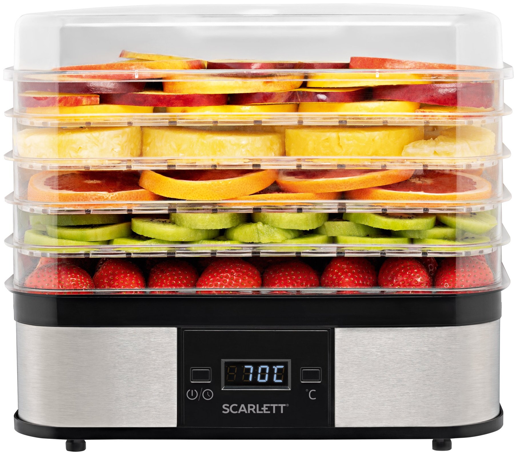 Сушилка для овощей и фруктов SCARLETT SC-FD421T19, нержавеющая сталь, 5 поддонов