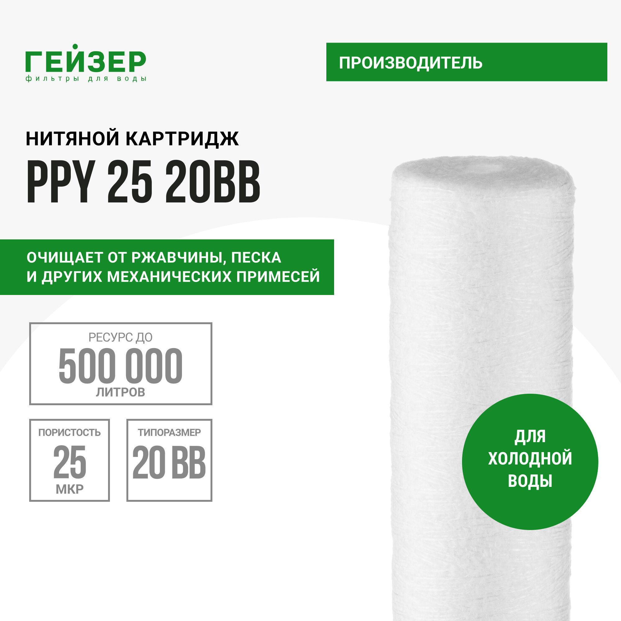 10 цен на Картридж Гейзер PPY 25 мкр.-20ВВ из намоточного полипропилена для очистки воды от механических примесей 28042