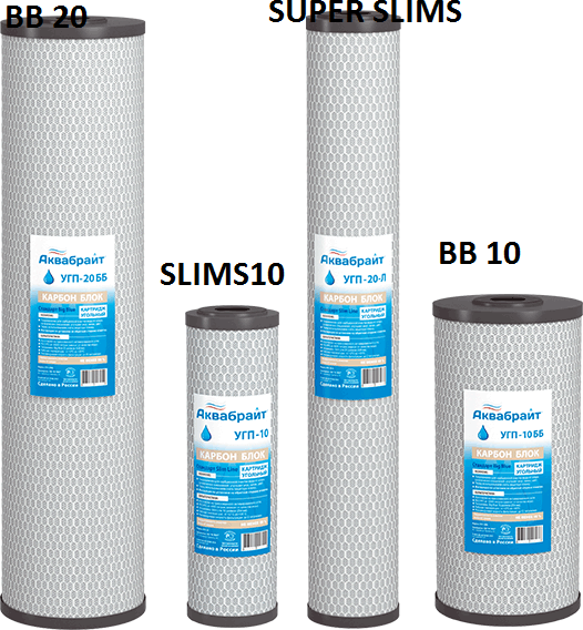 Картридж угольный Аквабрайт УГП-10, для очистки воды от хлора и органических соединений, Карбон Блок (SL10)