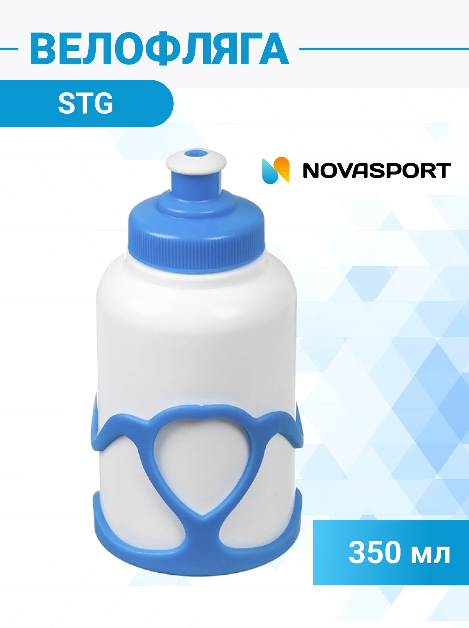 Велофляга STG с флягодержателем (Голубой флягодержатель, Белая Фляга). 550 ₽