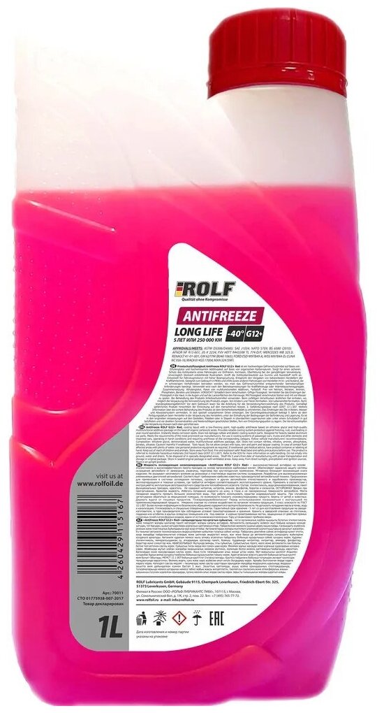 Антифриз ROLF Antifreeze G12+ Red 1л G12 + информация: