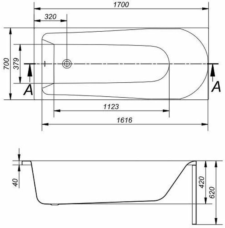 Акриловая ванна ARAGUT Кама 160х70 прямоугольная, в комплекте с каркасом, белая