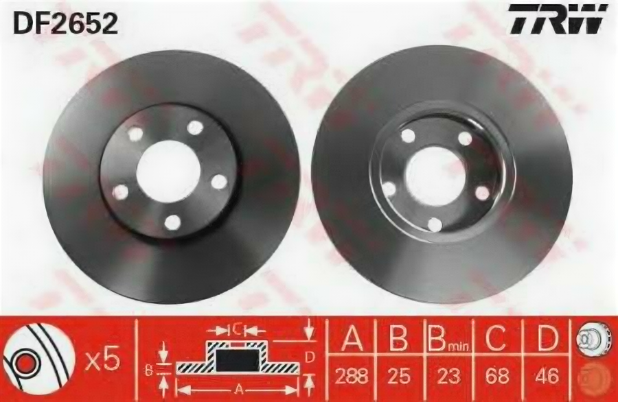 Торм.диск Пер.вент.[288X25] 5 Отв. TRW арт. DF2652 9 580 ₽