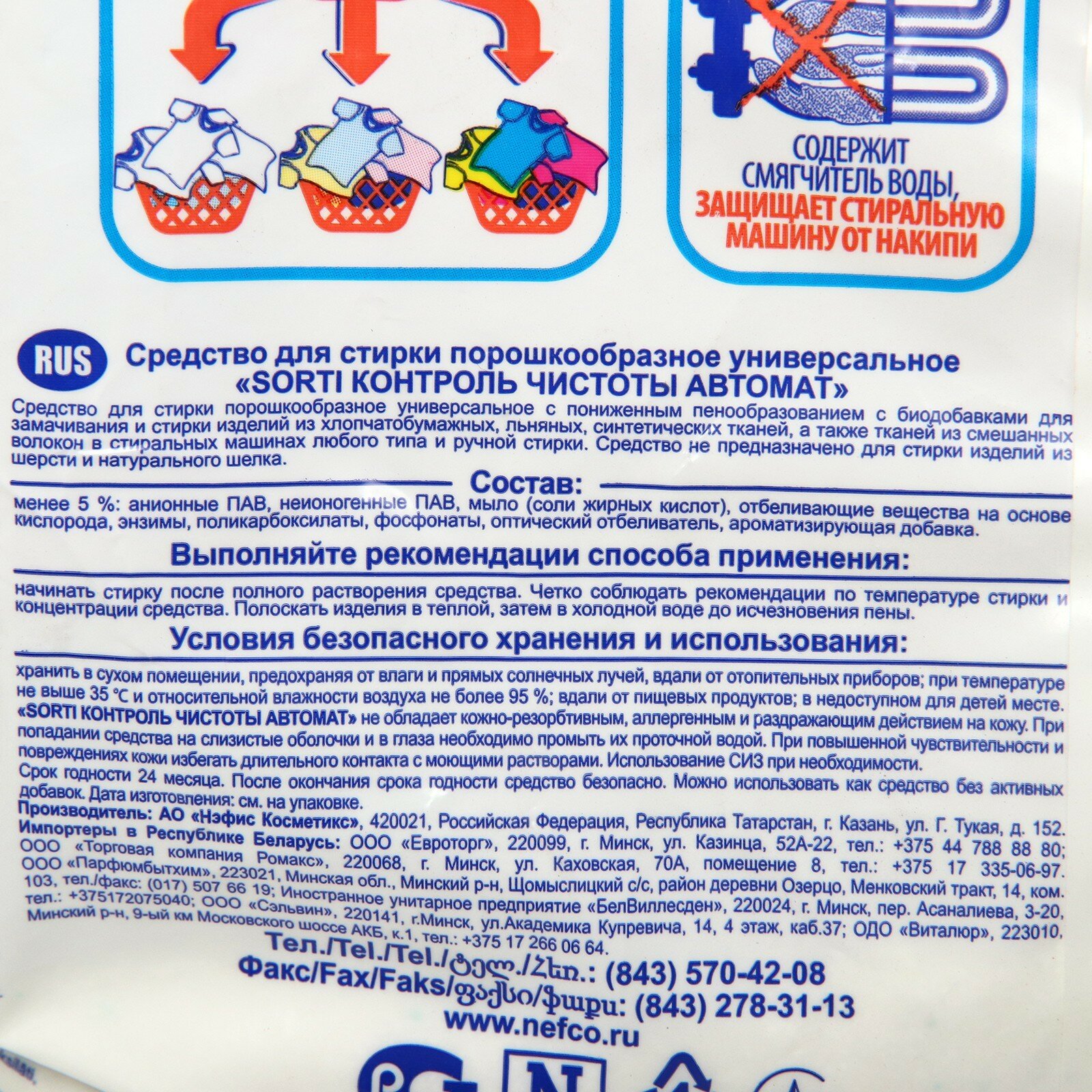 SORTI 2400мл Порошок для стирки Контроль чистоты автомат