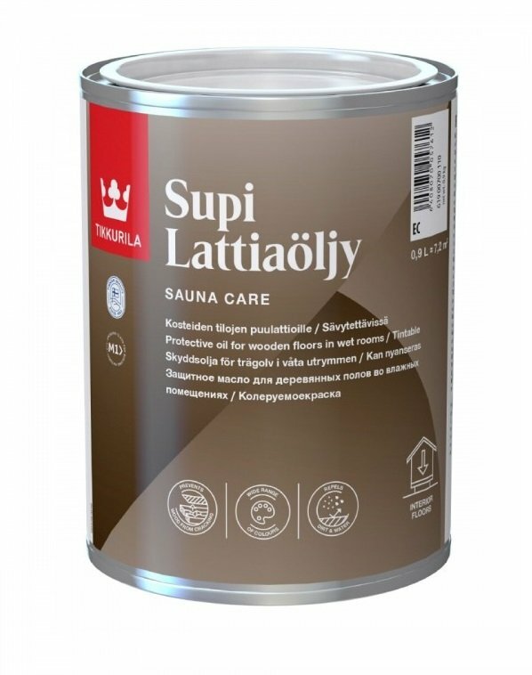 TIKKURILA SUPI LATTIAOLJU масло водоразбавляемое для полов в банях и саунах (0,9л)