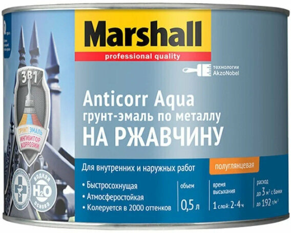 MARSHALL Anticorr aqua база BW грунт-эмаль антикоррозийная акриловая полуглянцевая (0,5л) информация:
