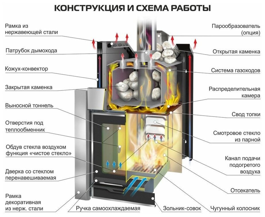 Дровяная печь для бани ERMAK 36 люкс (Нержавеющая сталь)