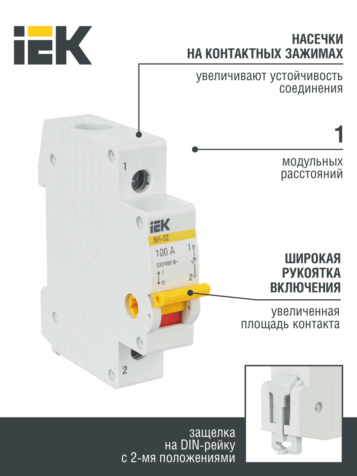 Выключатель нагрузки (мини-рубильник) ВН-32 1Р 100А | код. MNV10-1-100 | IEK ( 1шт. ) информация: