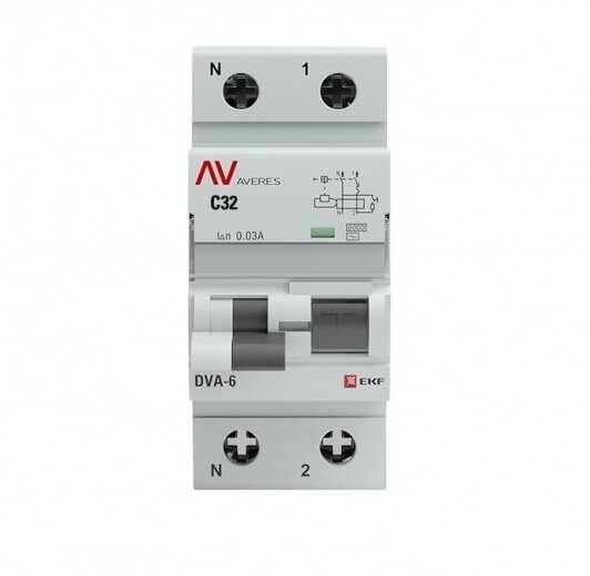Выключатель автоматический дифференциального тока DVA-6 32А (1P+N) двухполюсный характеристика C 6kA 30мА тип AC AVERES rcbo6-1pn-32C-30-ac-av EKF