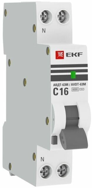 Дифференциальный автоматический выключатель EKF PROxima АВДТ-63М, 16А, С, 30мА, тип AС, 6кА, электронный
