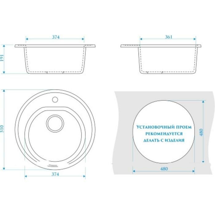 Мойка кухонная из камня ZETT lab. 3/Q7, d=510 мм, глубина 19 см, матовая, цвет хлопок./В упаковке шт: 1