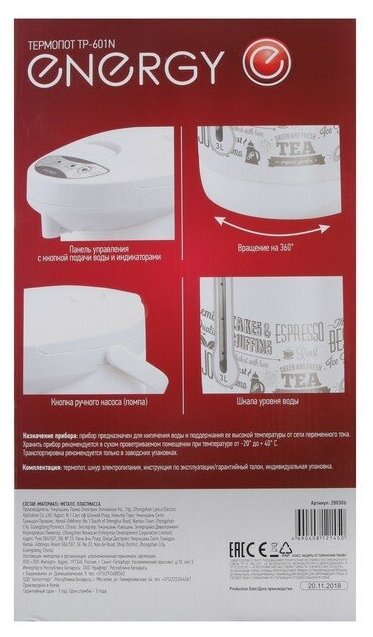 Термопот TP-601N, 3 л, 750 Вт, белый информация: