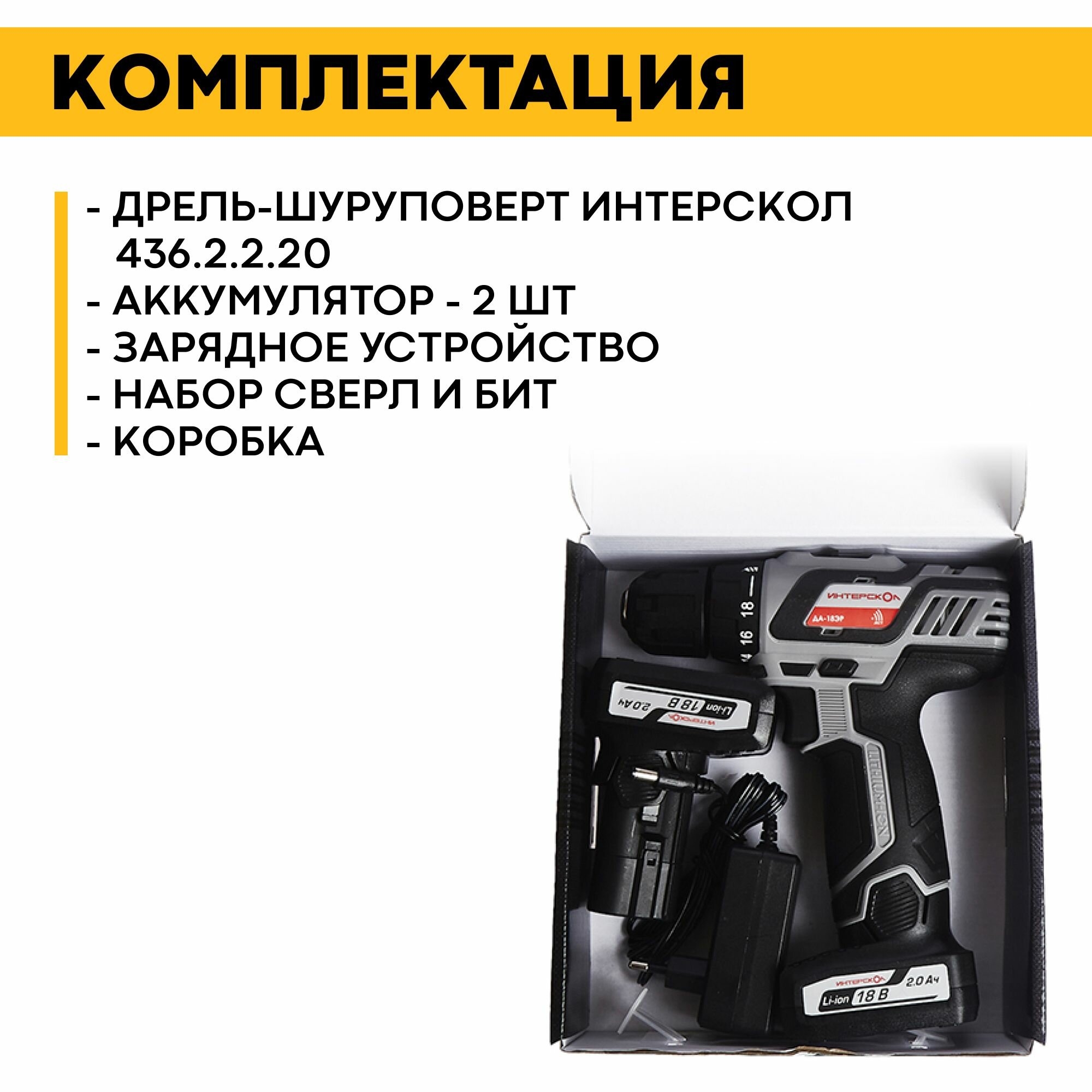 10 цен на Дрель-шуруповерт Интерскол ДА-18ЭР аккум. патрон:быстрозажимной (436.2.2.20)