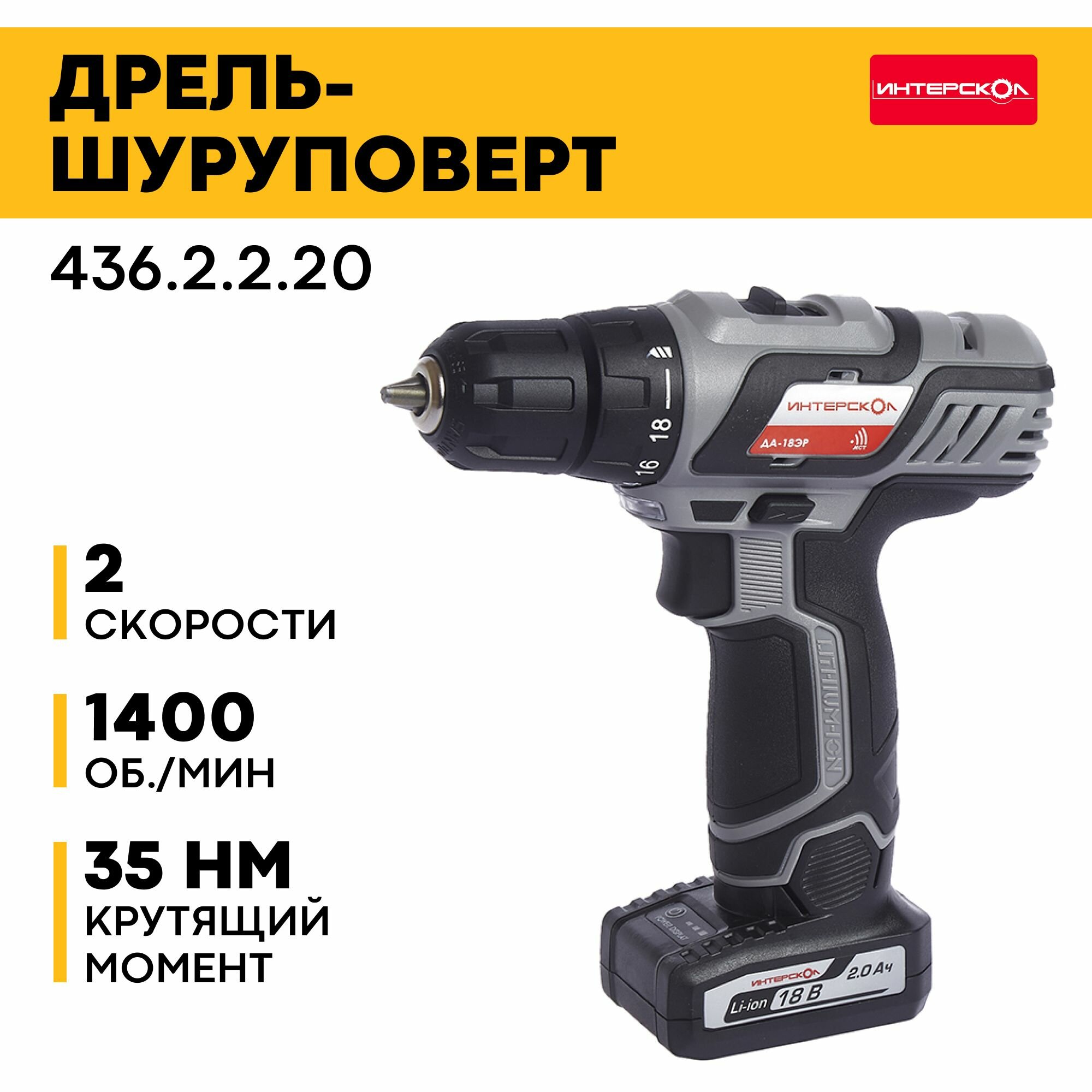 Дрель-шуруповерт Интерскол ДА-18ЭР аккум. патрон:быстрозажимной (436.2.2.20) информация: