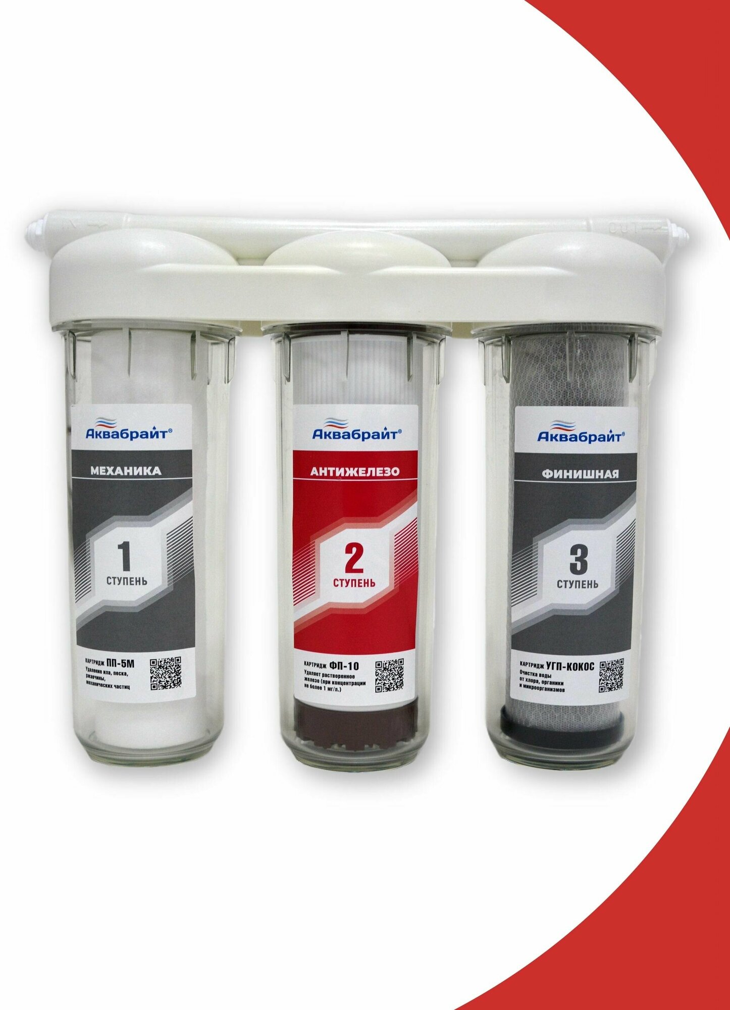 Трехступенчатая система очистки воды под мойку с отдельным краном. Аквабрайт абф- триа Антижелезо информация: