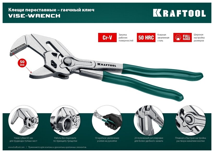 Клещи переставные-гаечный ключ Kraftool Vise-Wrench 250х50 мм информация:
