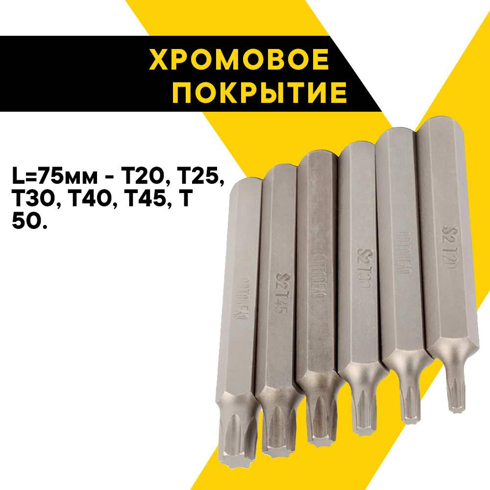 Набор бит, АвтоDело, TORX Т20-Т50, 75мм., 6 шт, блистер, 40632