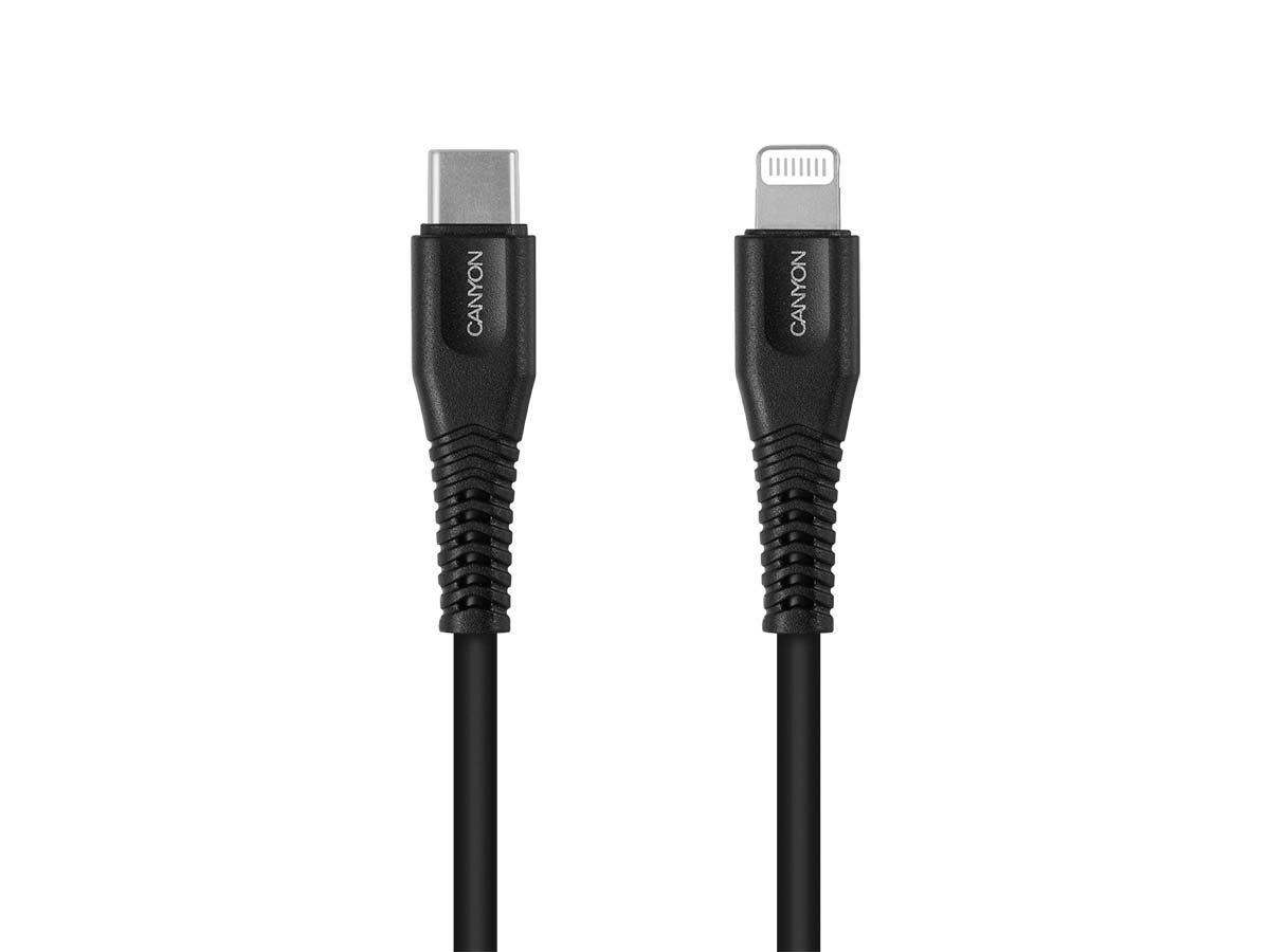 10 цен на Кабель Canyon MFI-4, USB-C to Lightning, для зарядки и передачи данных, 1,2 м, MFI, Черный, CNS-MFIC4B