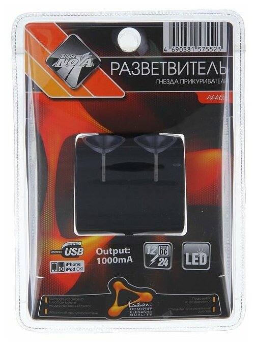 Прикуриватель 2 Гнезда 12/24 В Usb 1000 Ma Подсветка Черный Nova Nova Bright арт. 44465 информация: