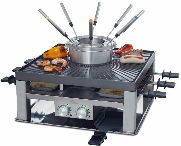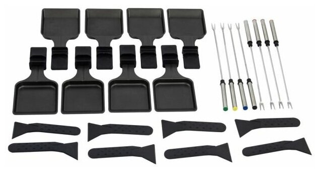 | Дополнительная информация | мощность 800 Вт (фондю); в комплекте: 8 раклет-сковородки, 8 скребков и 8 вилок фондю |