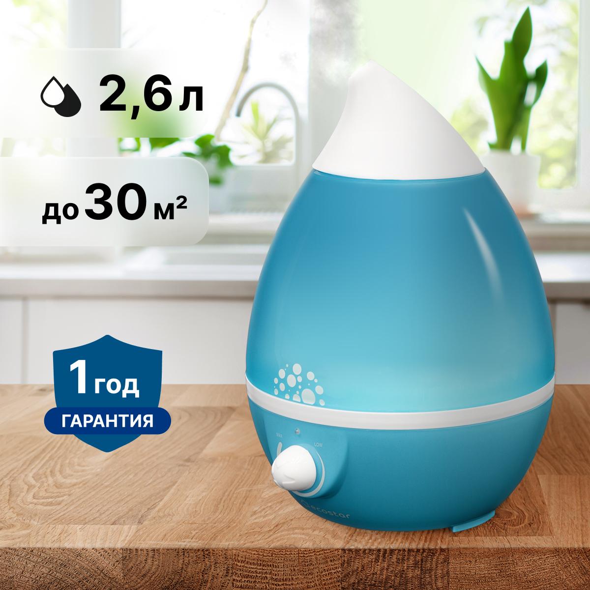 Увлажнитель воздуха Ecostar для дома серии HAPPY, ESH-HP250/2,6M-BL, голубой информация: