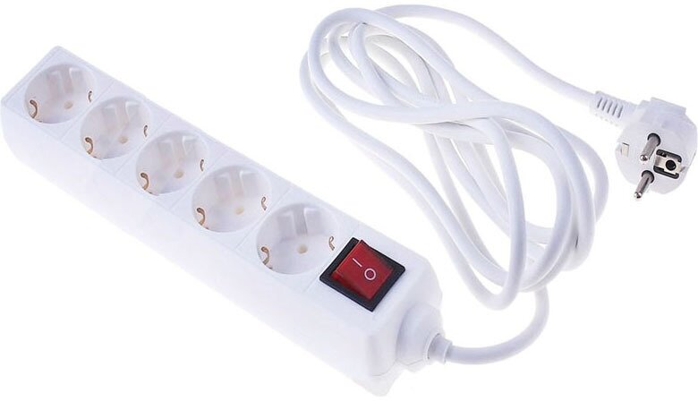 Удлинитель У05К 5х2P+PE с выключателем 3м 3х1мм2 16А/250В IEK белый WYP10-16-05-03-ZK-N