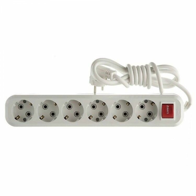 Удлинитель MAKEL MGP233, 6 розеток, с/з, 16А / 3500 Вт 6 3 м белый