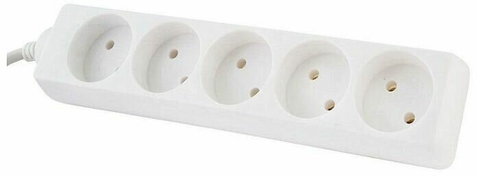 Удлинитель бытовой 5 гнезд, 5 метров, без заземления, ПВС 2х0,75мм2, 10А, 250В, IP20