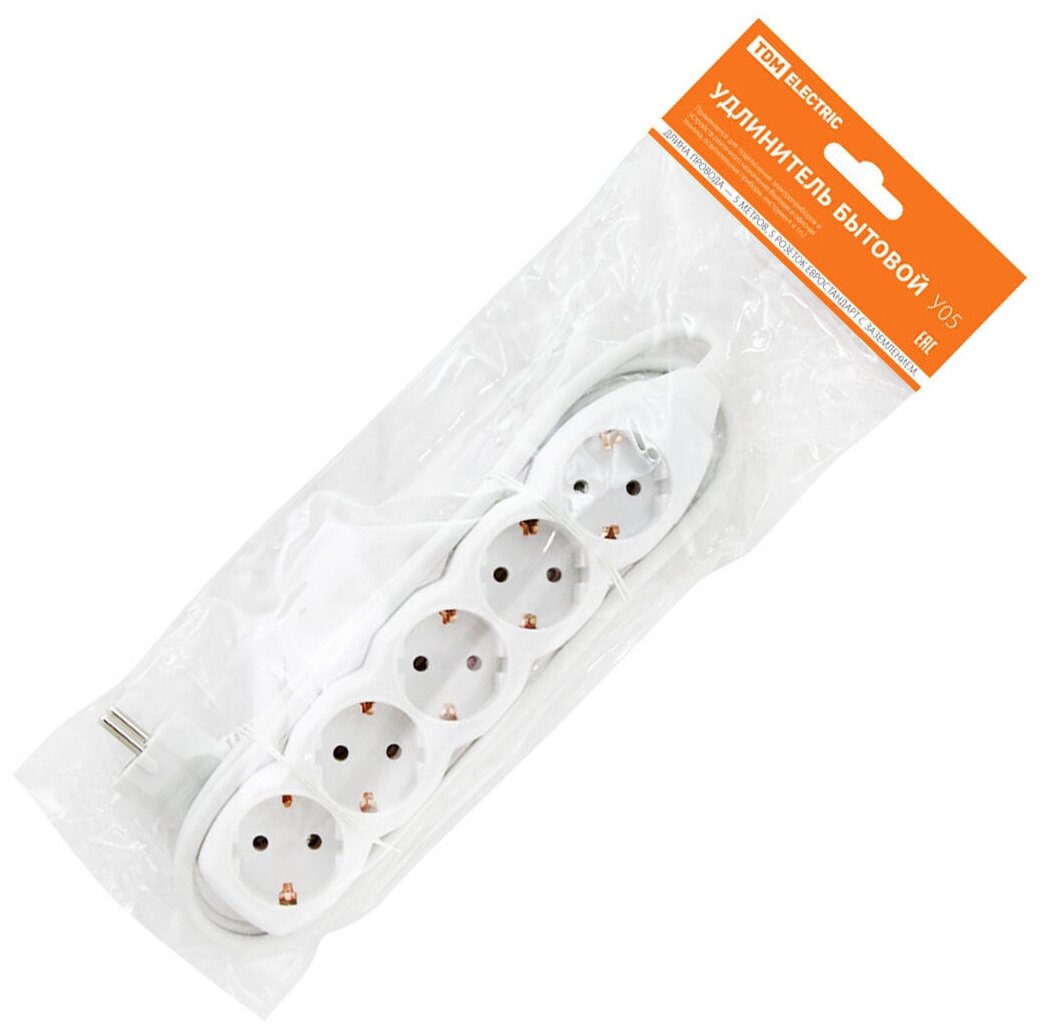 Удлинитель бытовой TDM У05, 5 гнезд, с заземлением, ПВС 3x1, 5м