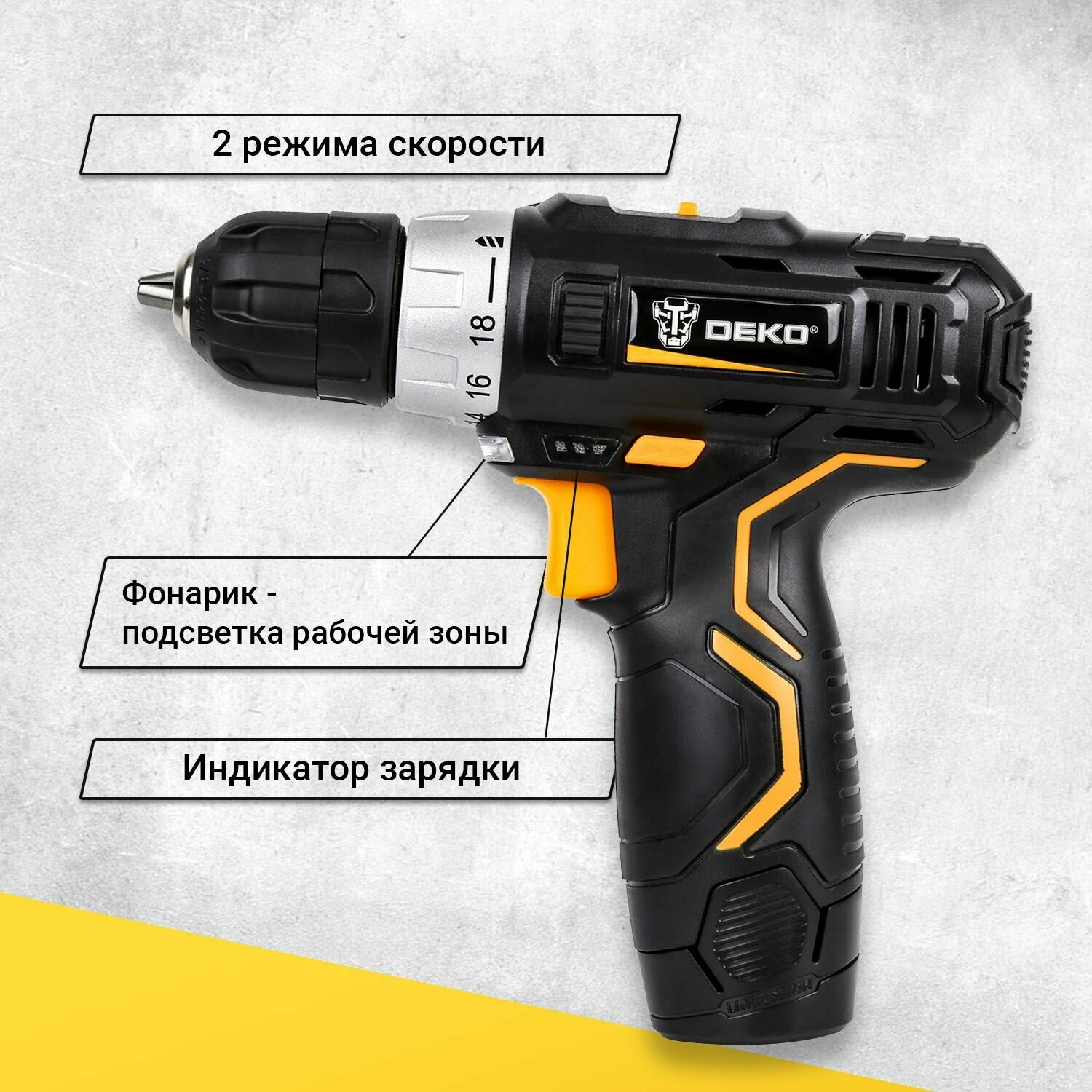 Аккумуляторная дрель-шуруповерт DEKO GCD12DU3 съёмный патрон Li-Ion 1.5 А·ч 12 В х1 коробка