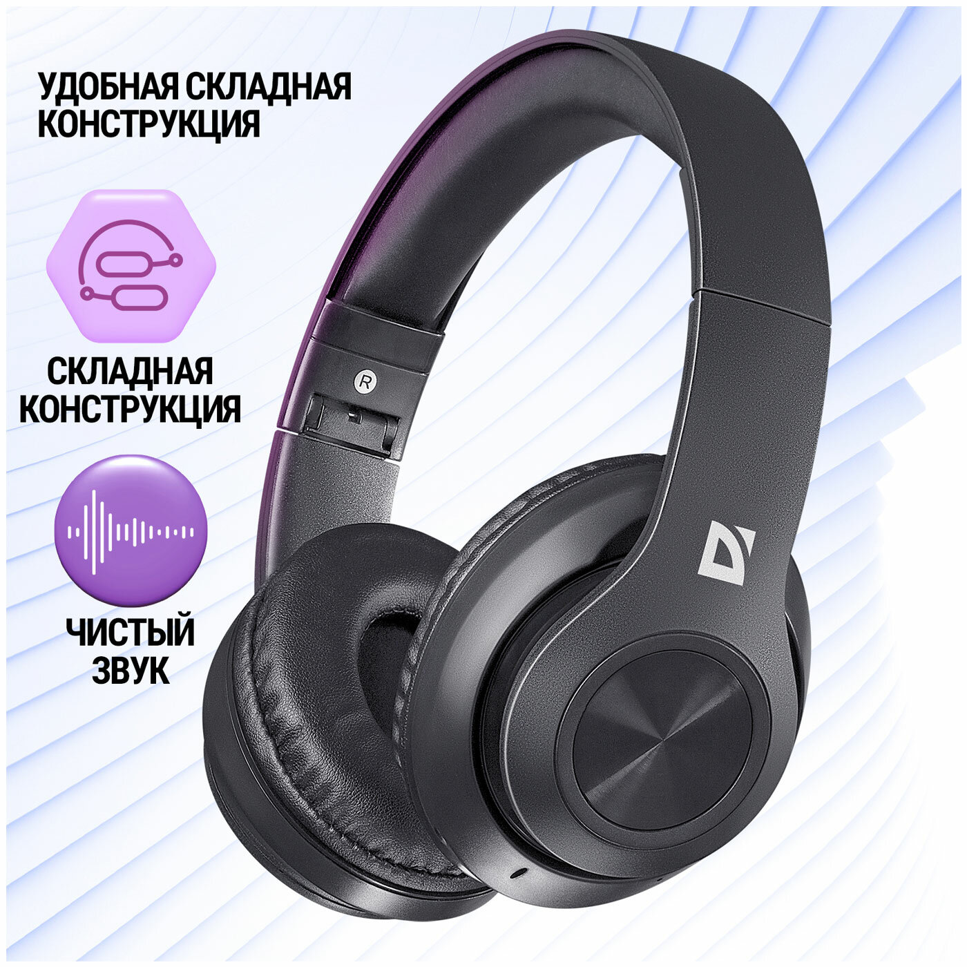 Наушники с микрофоном беспроводные Defender FreeMotion B552, Bluetooth, складные, MicroSD, разъем Micro-USB, черный ( Артикул 333522 ) 1 257 ₽