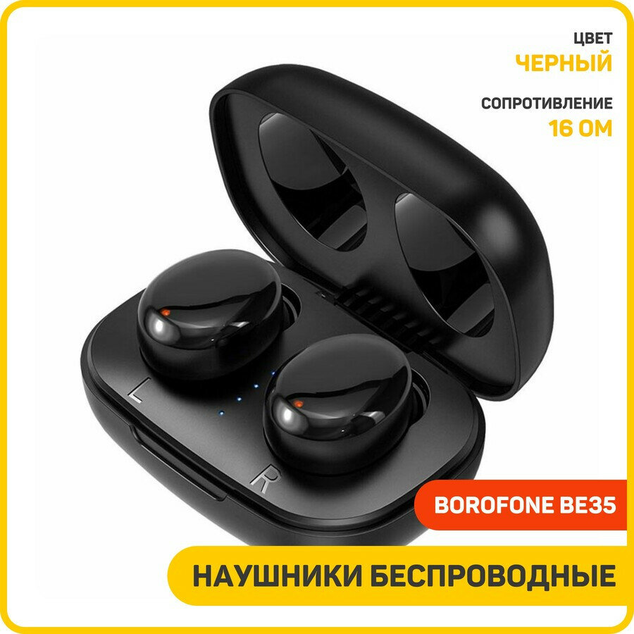 Наушники беспроводные Borofone BE35, вакуумные, TWS, микрофон, BT 5.0, 45/280 мАч, черные