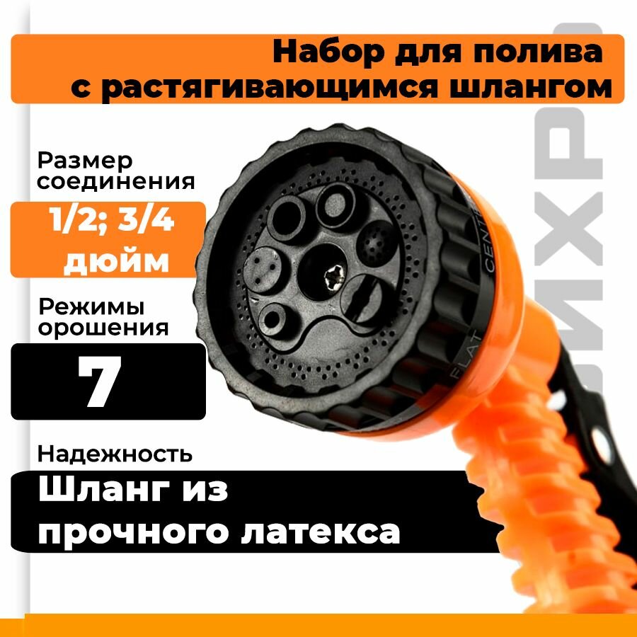 Набор для полива с растягивающимся шлангом 22м и пистолетом 7 режимов Вихрь